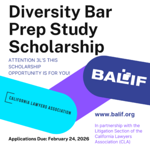 BALIF has partnered with the Litigation Section of the California Lawyers Association (“CLA”) to present a scholarship for those who have demonstrated an intent to pursue a career in litigation, have shown commitment to serving the LGBTQAI+ community, and are planning to take the California Bar Exam.